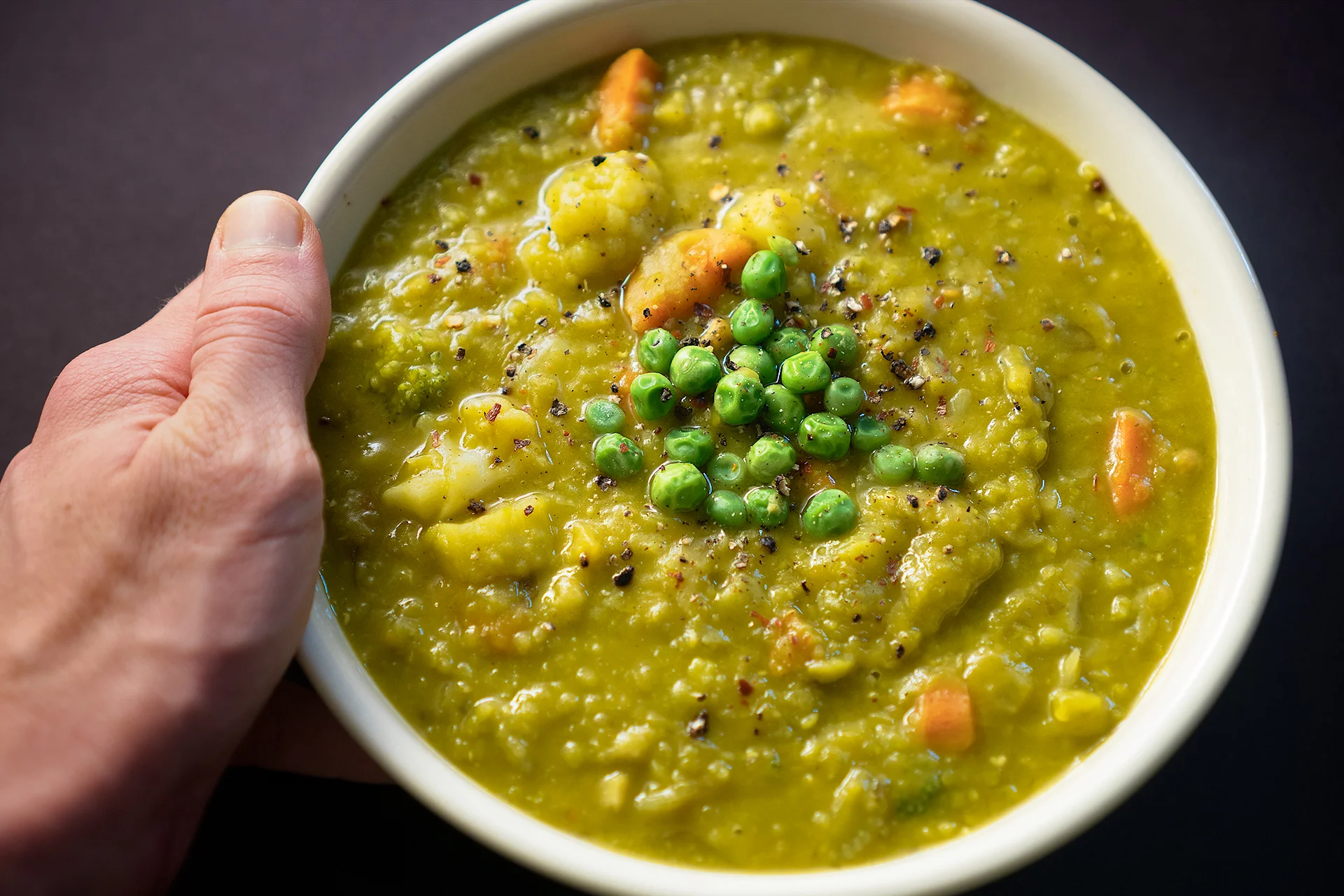 You also may like to blend half or more of the soup after cooking if the peas and veggies aren’t broken down enough for your liking. Experiment, and feel free to email us if you want some recommendations.